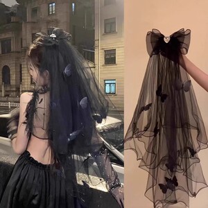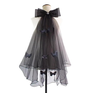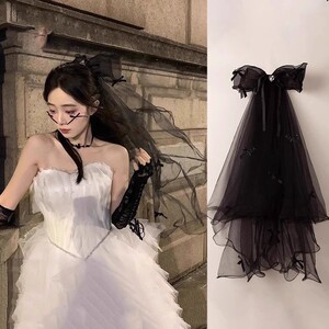 吸血鬼新娘 万圣节鬼魅新娘头纱黑白色婚纱蝴蝶结头饰领证发饰女