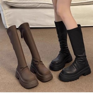 爆款长筒靴女2025新款秋季薄款厚底不过膝高筒骑士靴小个子长靴子