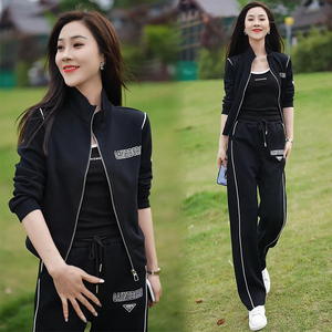 休闲运动服套装女士秋季新款洋气立领开衫外套阔腿裤跑步服两件套