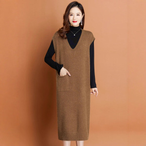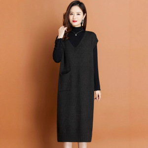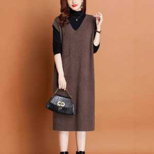外贸中长款无袖背心裙秋冬新款马甲背心女叠穿宽松显瘦针织连衣裙