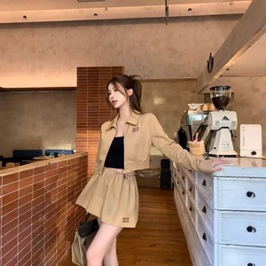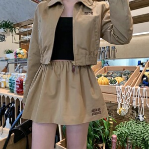 2025年早秋新m系南油高货翻领字母刺绣外套+高腰半裙减龄百搭套装