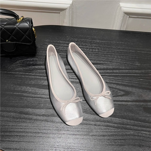 真皮豆豆鞋内增高单鞋女2025春夏季小个子法式芭蕾舞奶奶鞋软