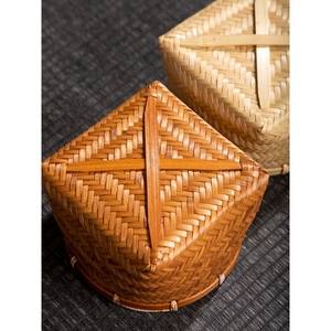 天然手工竹编小篓子方底圆口竹篮子零食点心收纳筐家用复古小篮子