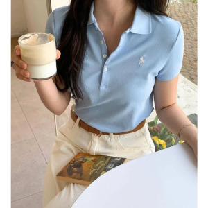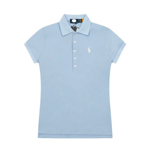 跨境外贸R*L拉夫针织短袖经典小马刺绣翻领排扣女款修身版POLOT恤