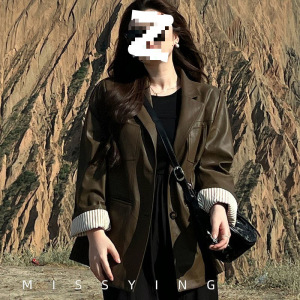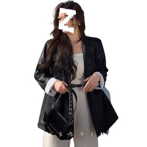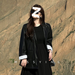 2025宽松复古高级皮衣外套女夹克机车微胖大码长袖上衣胖mm皮西装
