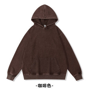 360G重磅做旧水洗连帽卫衣男女美式oversize大码落肩宽松纯色帽衫