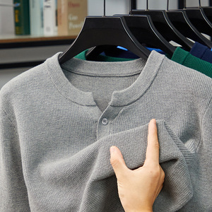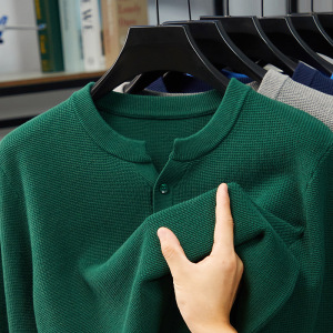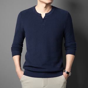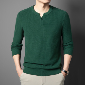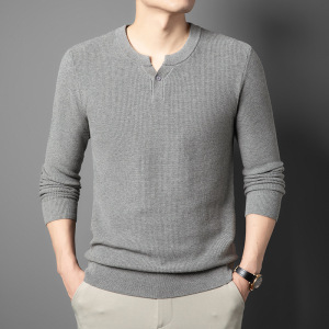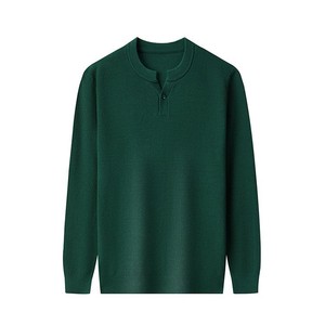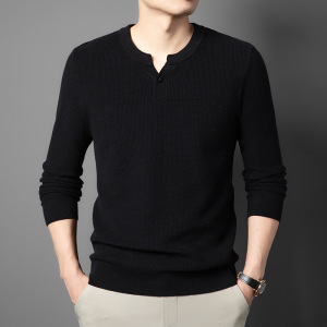 秋冬季全棉休闲男士针织衫长袖上衣中年纯色百搭纽扣潮流时尚毛衣