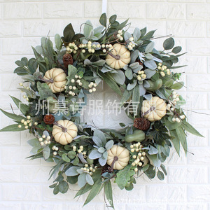 感恩节兔儿叶南瓜花环秋季跨境亚马逊Fall Wreath Thanksgiving
