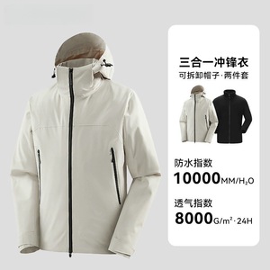 鸟家国标冲锋衣女三合一户外防风防水两件套男全天候GBT32614外套