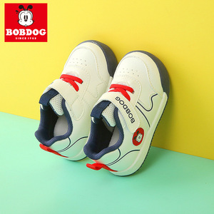 巴布豆婴幼儿鞋子秋冬男童软底防滑学步鞋1-3岁宝宝皮面防水板鞋4