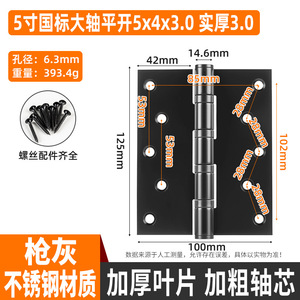 5*3*3『大轴』平开5寸合页不锈钢『枪灰色』