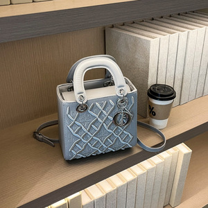流行手提小方包女2025新款高级感洋气戴妃包时尚菱格刺绣斜跨包