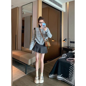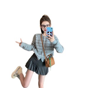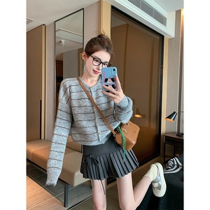 2025秋季新款百搭针织衫短外套女宽松条纹毛衣外套外穿