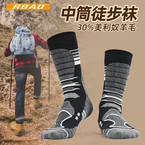 户外 30%美利奴羊毛袜 加厚保暖中筒袜行山运动登山徒步袜子