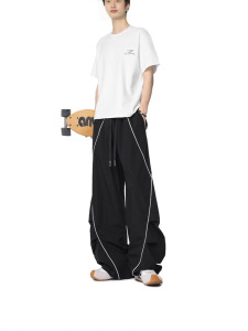 美式复古弯刀冰丝裤宽松街舞运动直筒卫裤弯刀阔腿春夏休闲裤