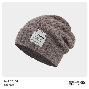 2025新款冬季保暖毛线帽大头围显脸小护耳针织帽套头帽羊毛堆堆帽