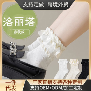 洛丽塔吊带白色蕾丝花袜子Lolita夏季薄款中筒日系配乐福鞋公主