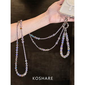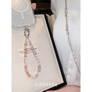 魅影紫闪钻斜挎手机链轻奢小众精致高级感水晶挂链时尚防摔挂脖女