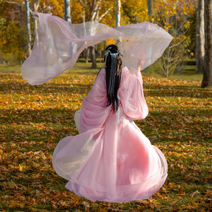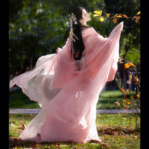 粉色战国袍汉服2025新款马山楚墓古装蕾丝大袖衫古风仙气飘飘套装
