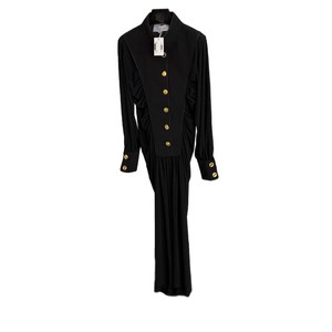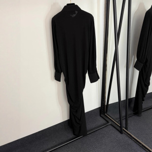 2025夏季南油高端外贸新款金纽扣褶皱收腰立领长袖包臀鱼尾连衣裙