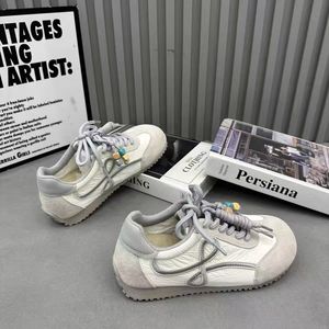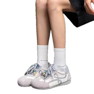 2025新款复古百搭软底内增高运动休闲鞋女串珠鞋带阿甘鞋德训鞋潮