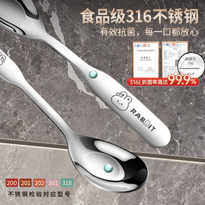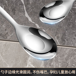 316L不锈钢勺子家用儿童宝宝吃饭勺子成人喝汤调羹加厚加深小汤匙