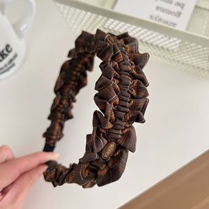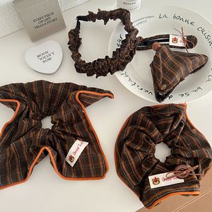 韩系复古棕色条纹方巾大肠发圈女2025新款洋气盘发抓夹懒人夹发饰