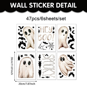 Temu爆款万圣节白色幽灵玻璃窗装饰窗贴静电贴蝙蝠南瓜窗户贴花