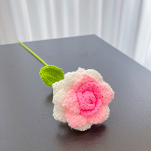 尖角玫瑰花编织花束假花手工钩针仿真花毛线花朵成品情人节教师节