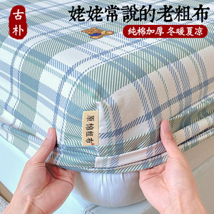 老粗布床笠单件纯棉100全棉床垫保护罩全包床罩套加厚床单三件套