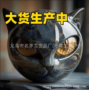 跨境Luxury Black Cat Stone Sculpture奢华黑猫树脂雕像摆件