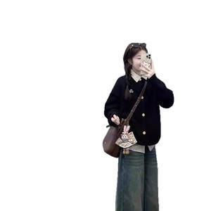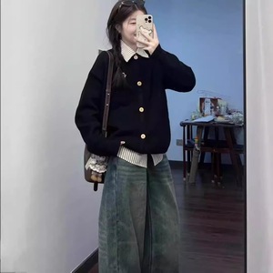 韩系刺绣学院风毛衣女外套春秋宽松气质慵懒高级感针织开衫