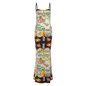 欧美风2025秋季亚马逊新款时髦个性气质数码印花无袖吊带连衣裙女