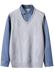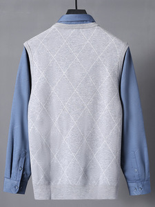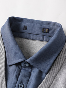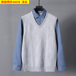 海牌剪标假两件针织衫男冬季时尚双领提花套头打底衫毛衣男4U028