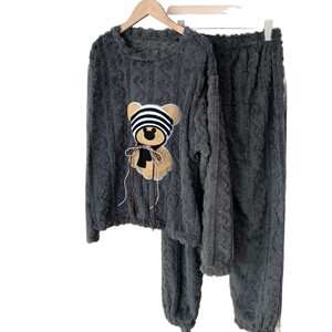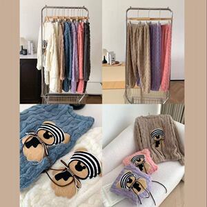 秋冬珊瑚绒睡衣套装女保暖外穿可爱卡通小熊加厚法兰绒长袖家居服