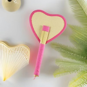 粉色心形草编裸扇
