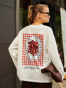 100%纯棉长袖t恤2025春秋季时尚趣味甜美少女心慵懒风显瘦上衣女