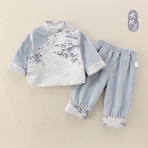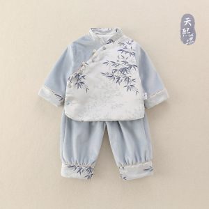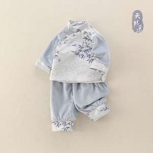 婴幼儿新中式分体套装春秋款唐装宝宝抓周生日礼服国风爬服二件套