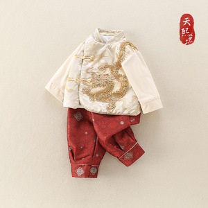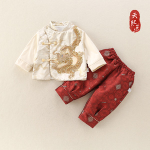 儿童新中式分体套装春秋款唐装男宝宝抓周服中国龙唐装国风二件套