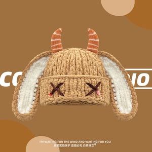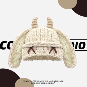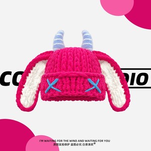 秋冬毛线帽子男女可爱甜酷风小恶魔耳朵搞怪牛角加厚保暖针织帽潮