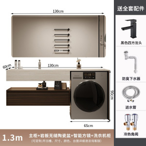 130CM岩板热弯一体盆+普通镜柜+洗衣机柜