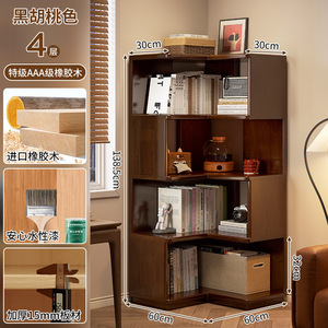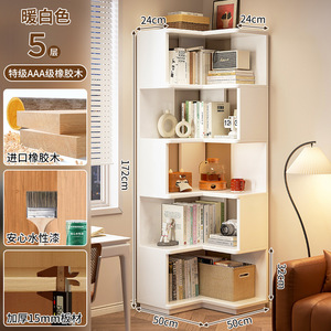 全实木转角书柜落地置物架学生家用客厅角柜墙角收纳拐角床头书架