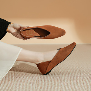 尖头豹纹内增高单鞋女秋冬绒面法式通勤两穿平底单鞋瓢鞋奶奶鞋