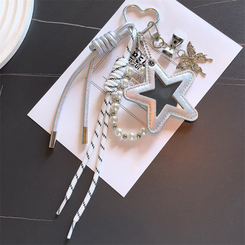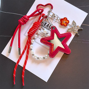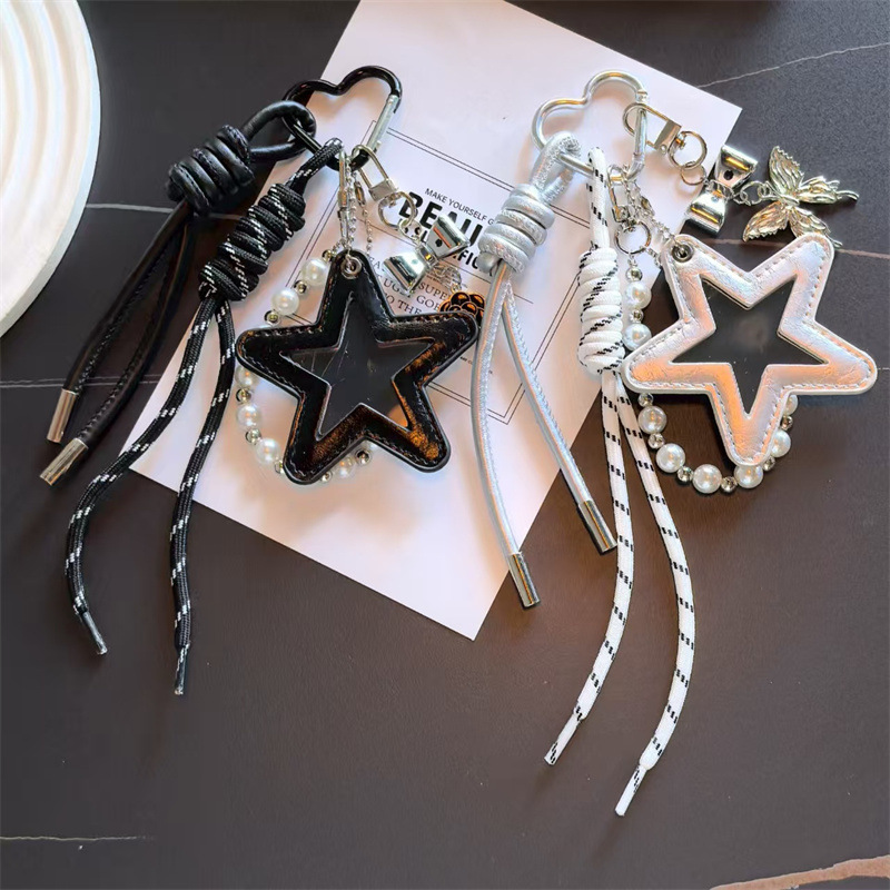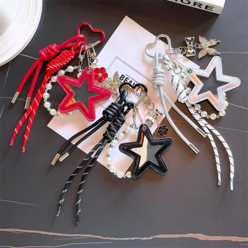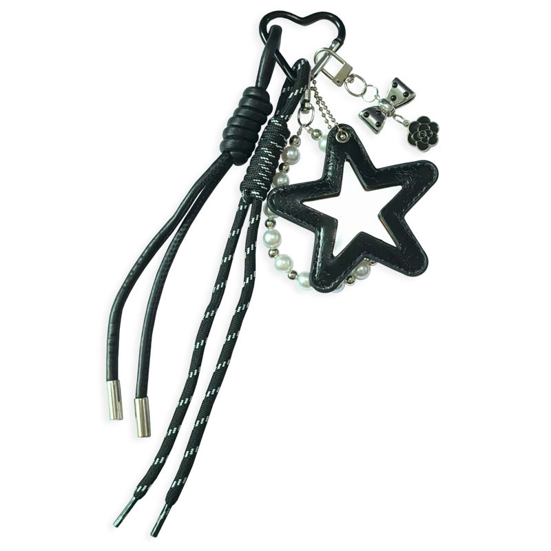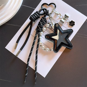 跨境miu系皮革五角星编织绳PU钥匙扣多巴胺包包配饰钥匙挂饰挂件
