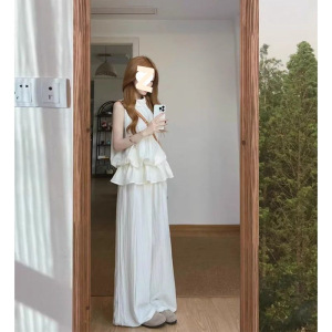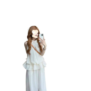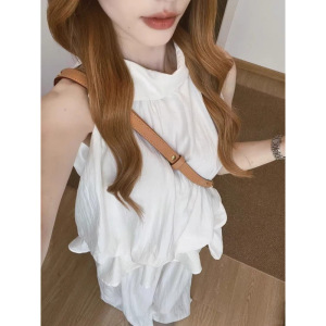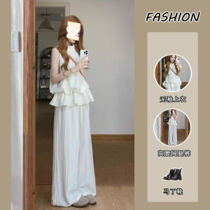 套装女2025夏季新款韩系减龄无袖收腰背心上衣高腰阔腿裤两件套潮