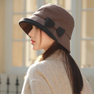 毛呢渔夫帽女秋冬季法式优雅复古赫本风蝴蝶结气质名媛卷边礼帽子