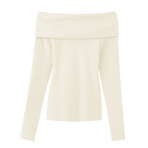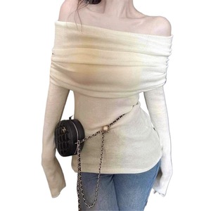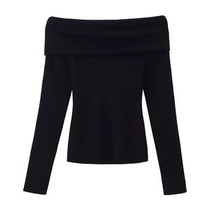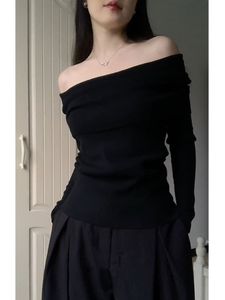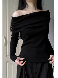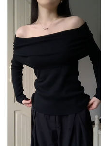 法式黑色一字肩上衣女春装露肩设计感小众修身气质内搭长袖针织衫