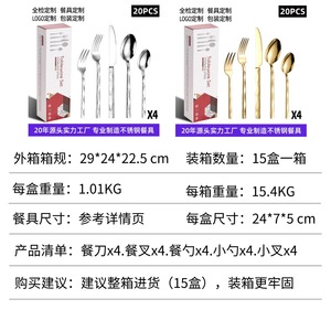 亚马逊餐具不锈钢刀叉勺20件套西餐网红酒店牛排刀叉餐具套装礼品