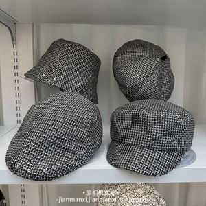 小香风亮片前进帽八角帽水桶帽渔夫帽秋季新款显脸小画家帽蓓蕾帽