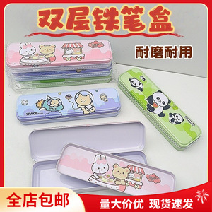 卡通铅笔盒铁皮双层儿童多层文具盒学生学习笔盒大容量耐用收纳盒